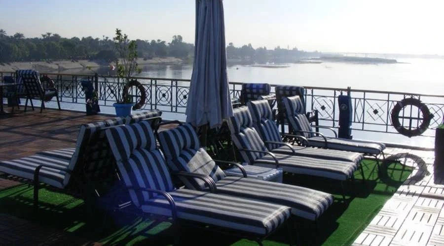 Relax on the sundeck as you watch the golden glow of the sun dip below the horizon over the Nile, with the warm breeze and the sound of the water.