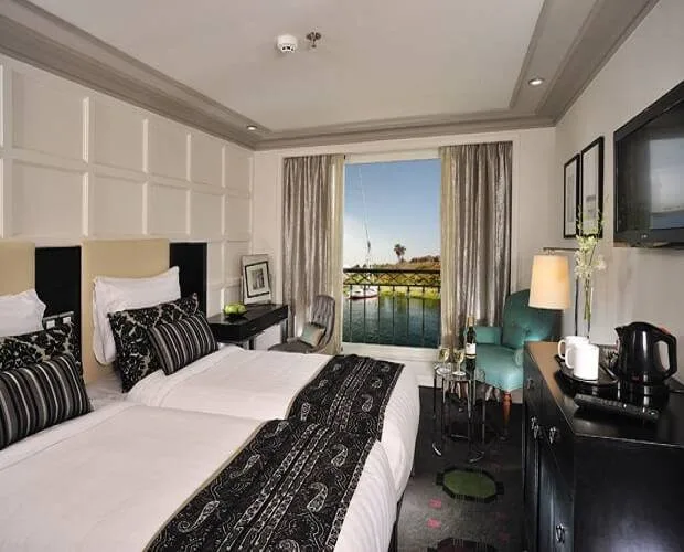 Sail the Nile in style aboard the MS Mayfair Nile Cruise, featuring spacious cabins with panoramic windows, elegant dΓ©cor, and all the comforts of a floating boutique hotel.
