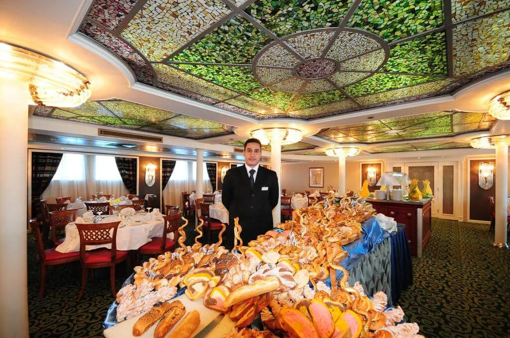 The MS Royal Ruby Nile Cruise operates on a full-board basis, which means daily breakfast, lunch, afternoon tea, and dinner are included. Guests enjoy a variety of Egyptian and international dishes prepared fresh by the onboard chefs.