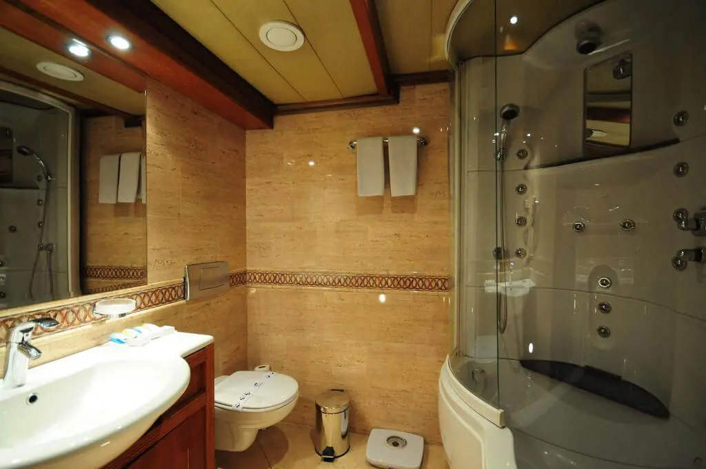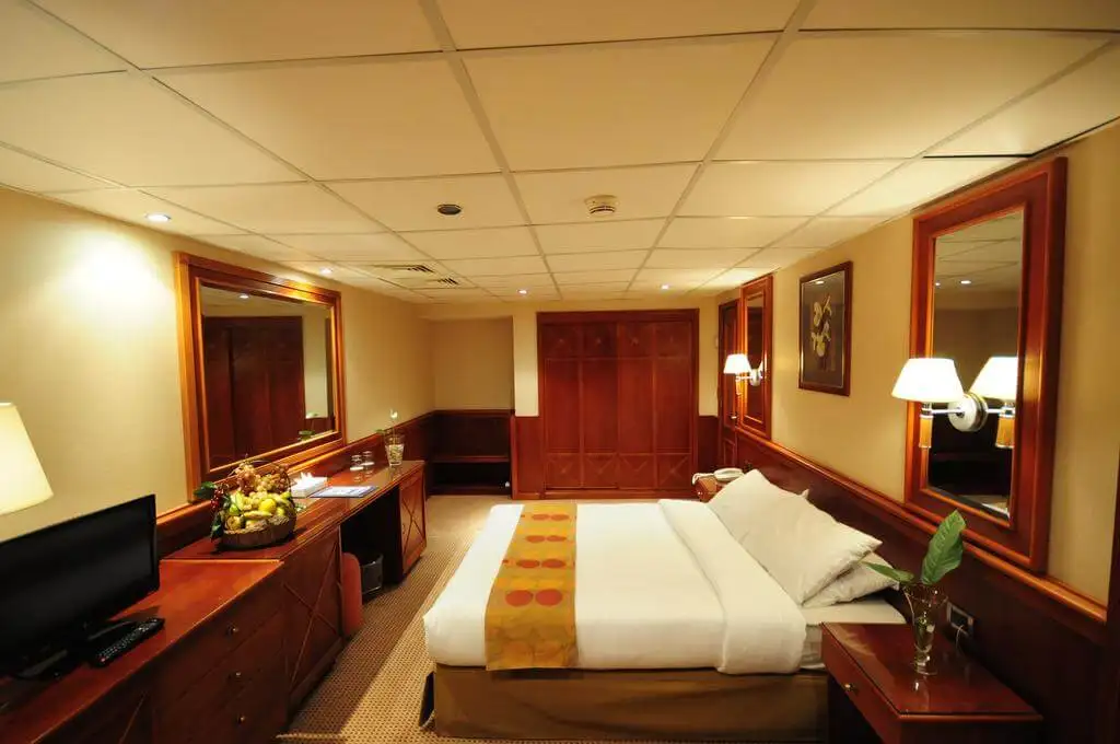 The MS Royal Ruby Nile Cruise offers elegant cabins with panoramic Nile views, air-conditioning, en-suite bathrooms, and modern amenities for your comfort.